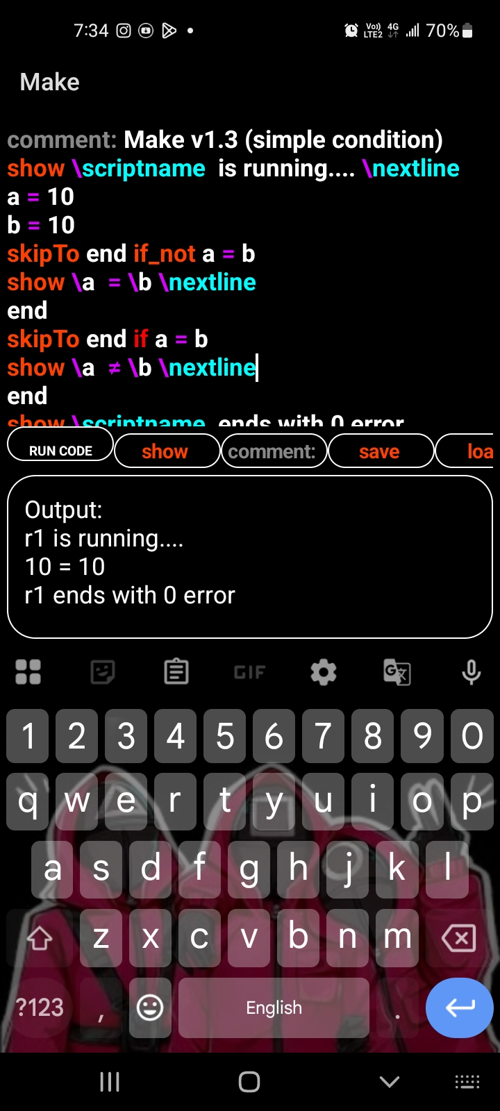 Make is a tiny, ultra-flexible scripting language and language-creation engine. This release focuses on readability, workflow, and polish. Project started 12 November 2025.